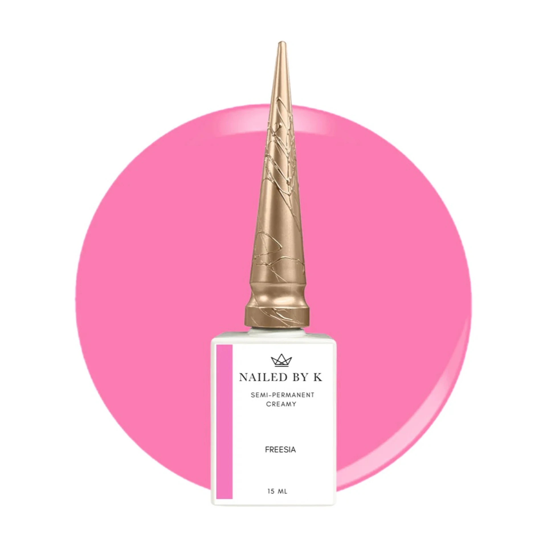 Le vernis semi-permanent Freesia de Nailed By K est conçu pour offrir une application fluide et une pigmentation intense.