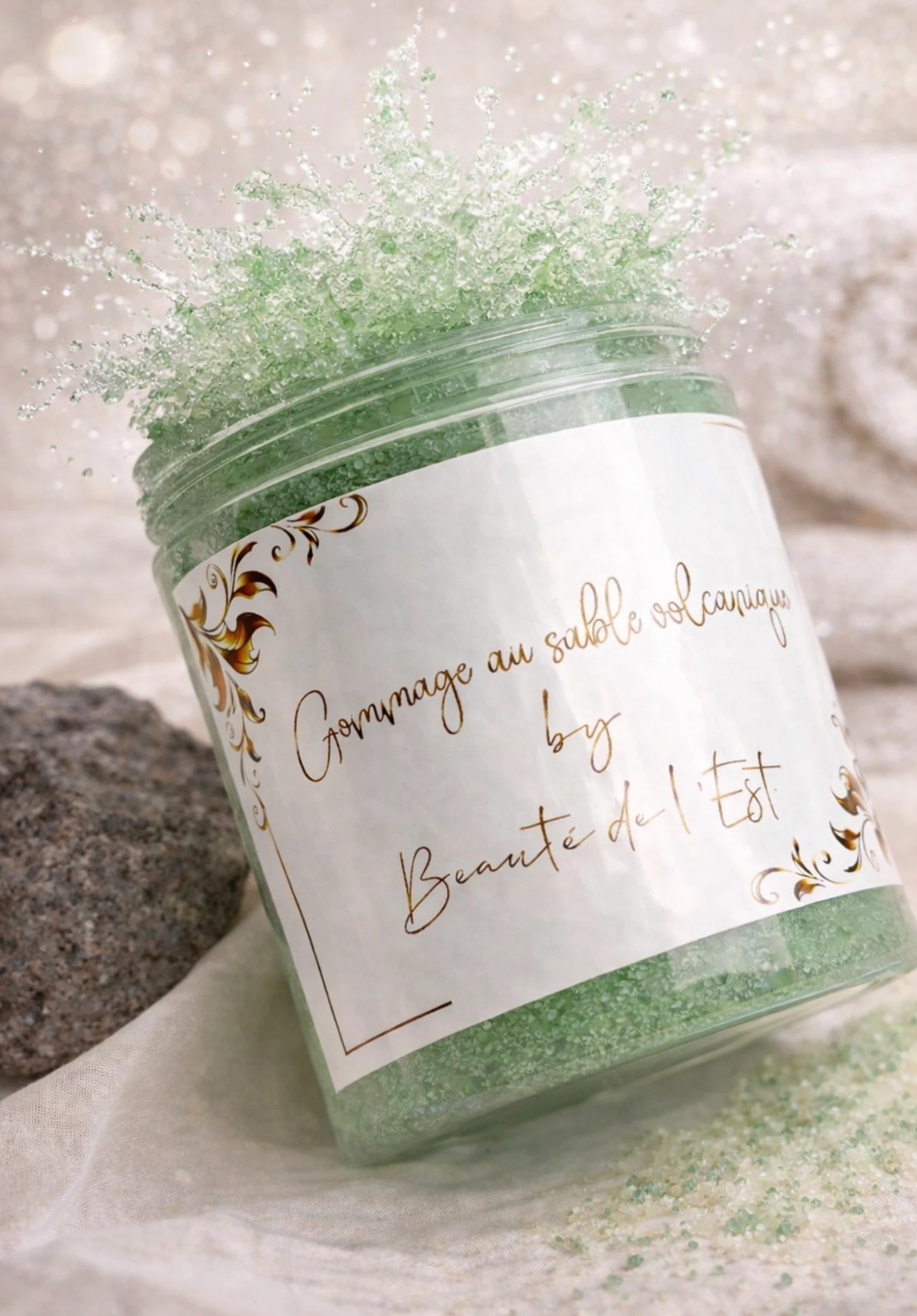 Le Gommage au Sable Volcanique de l'Académie de l'Est est un soin exfoliant naturel formulé à base de sable volcanique, de glycérine végétale et d'huiles essentielles de menthe et de géranium.