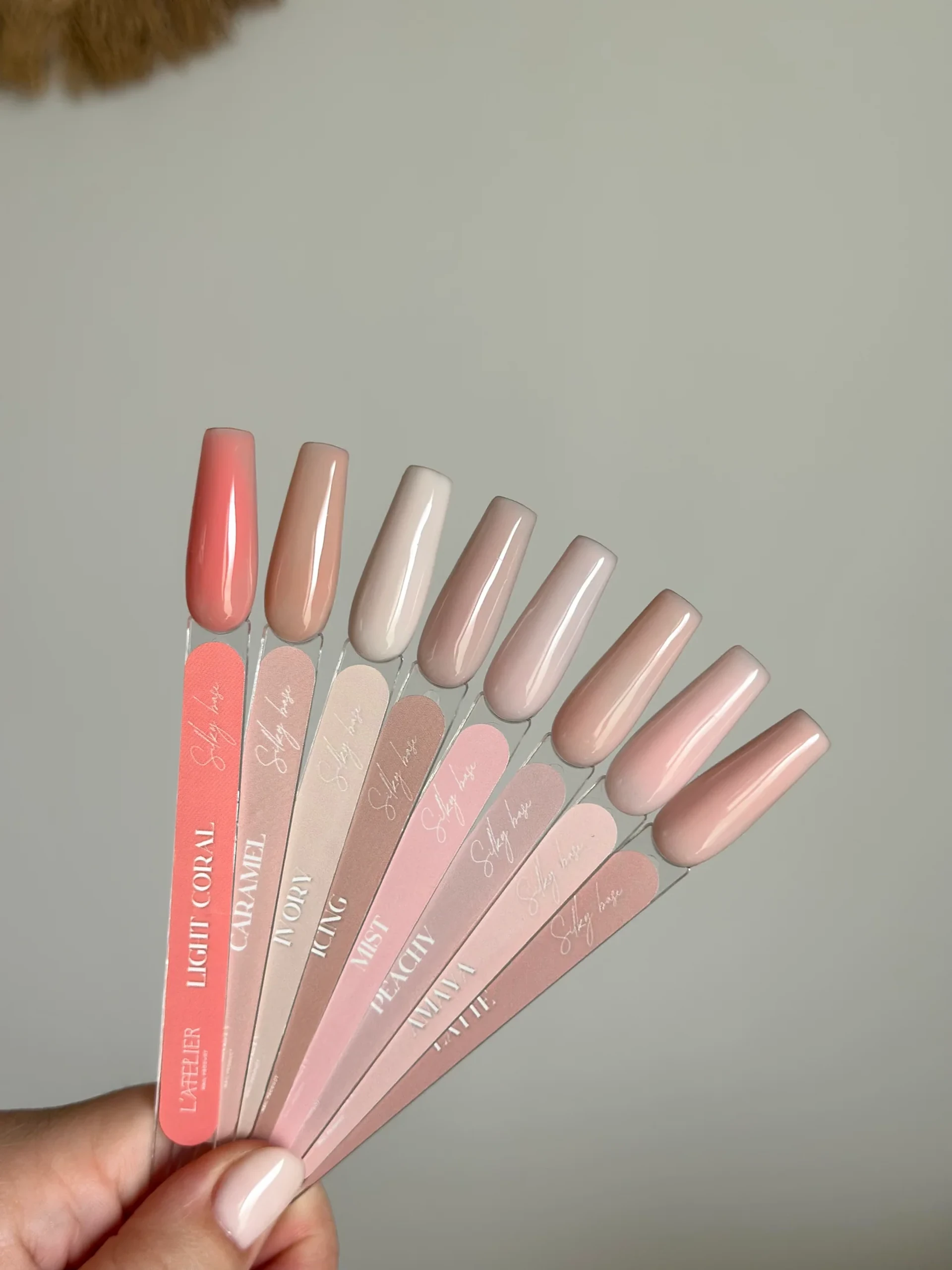 La Silky Base Amaya de L'atelier Nail Product est une rubber base cover rose nude moyen aux reflets chauds, polyvalente et ultra-adhérente.