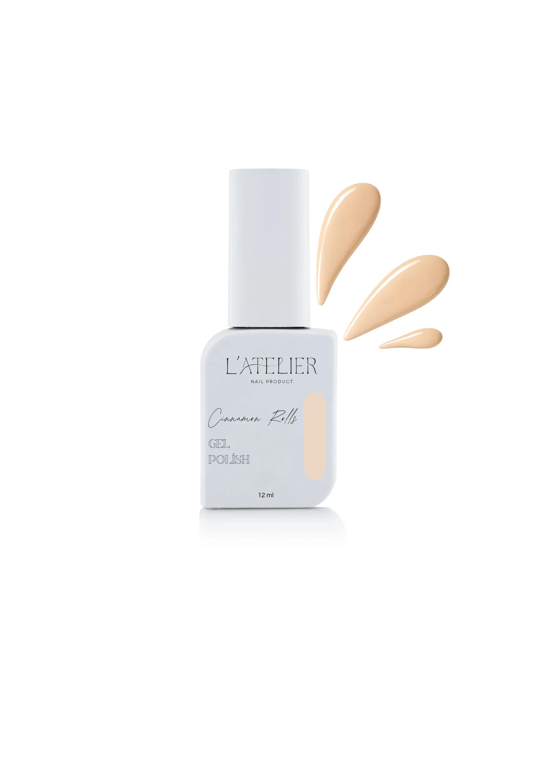 Le vernis semi-permanent Cinnamon Roll de L'atelier Nail Product est une teinte beige pêche nude douce et crémeuse aux reflets vanillés d'une délicatesse remarquable.