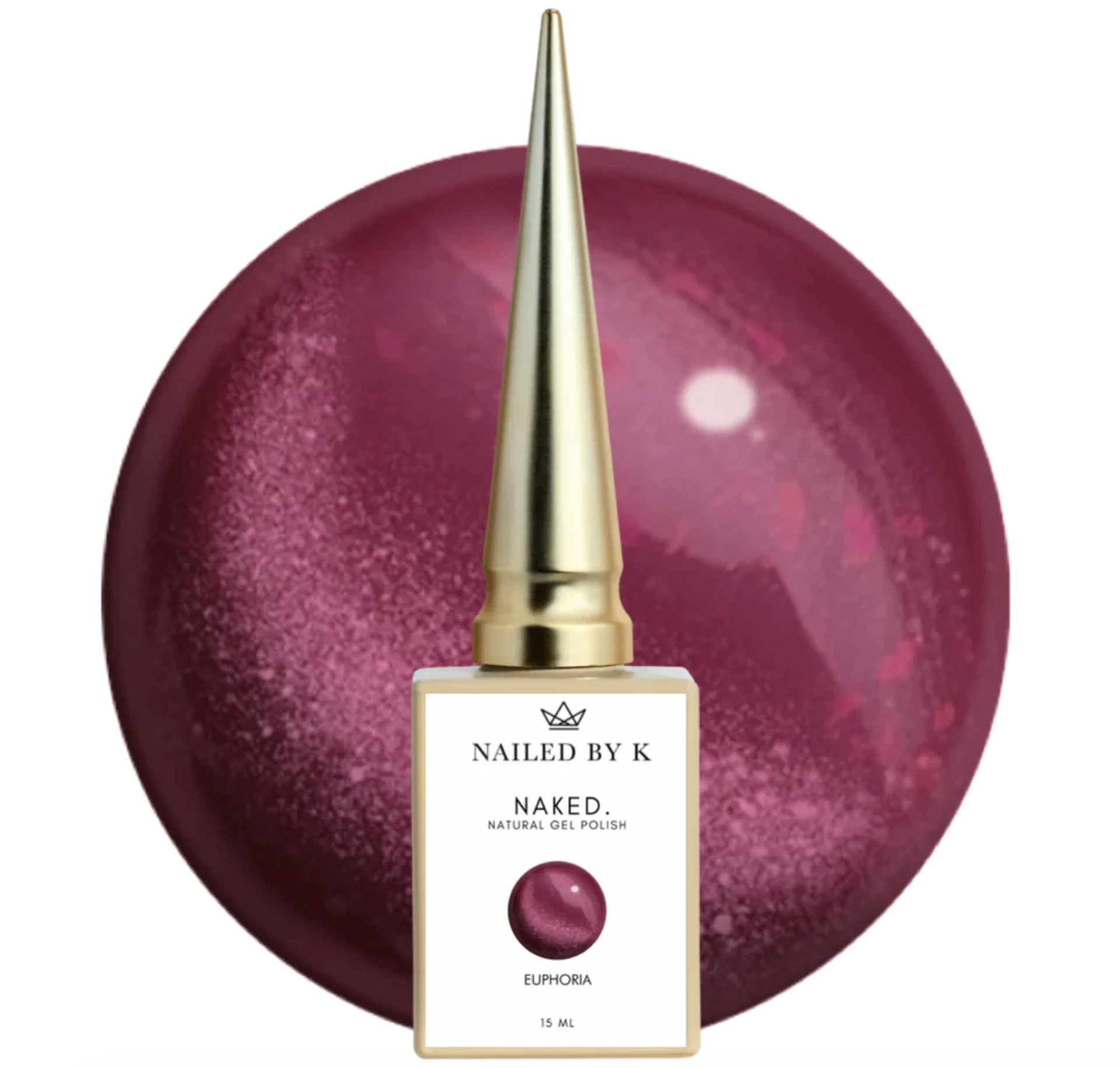 Euphoria de la collection Naked. de Nailed By K est un vernis semi-permanent Cat Eye 9D rose framboise foncé aux flakes nacrées irisées multicolores. Son effet cat eye dévoile une bande lumineuse nacrée selon l'angle et la lumière, pour un rendu profond et festif.