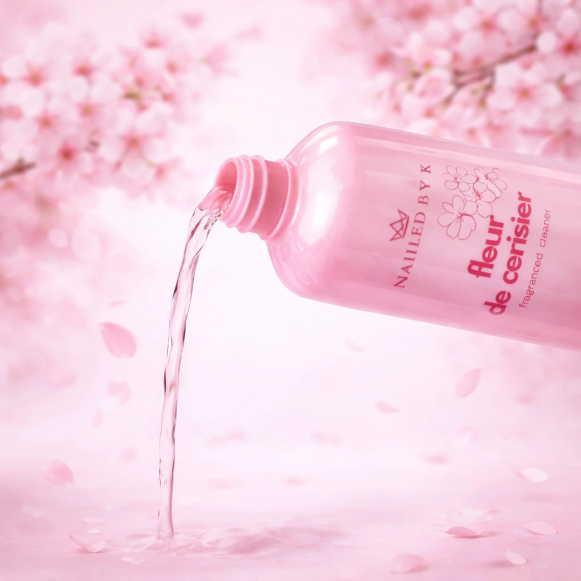 Le Cleaner Fleur de Cerisier de Nailed By K est un liquide adhérent haute qualité au délicat parfum de fleur de cerisier.