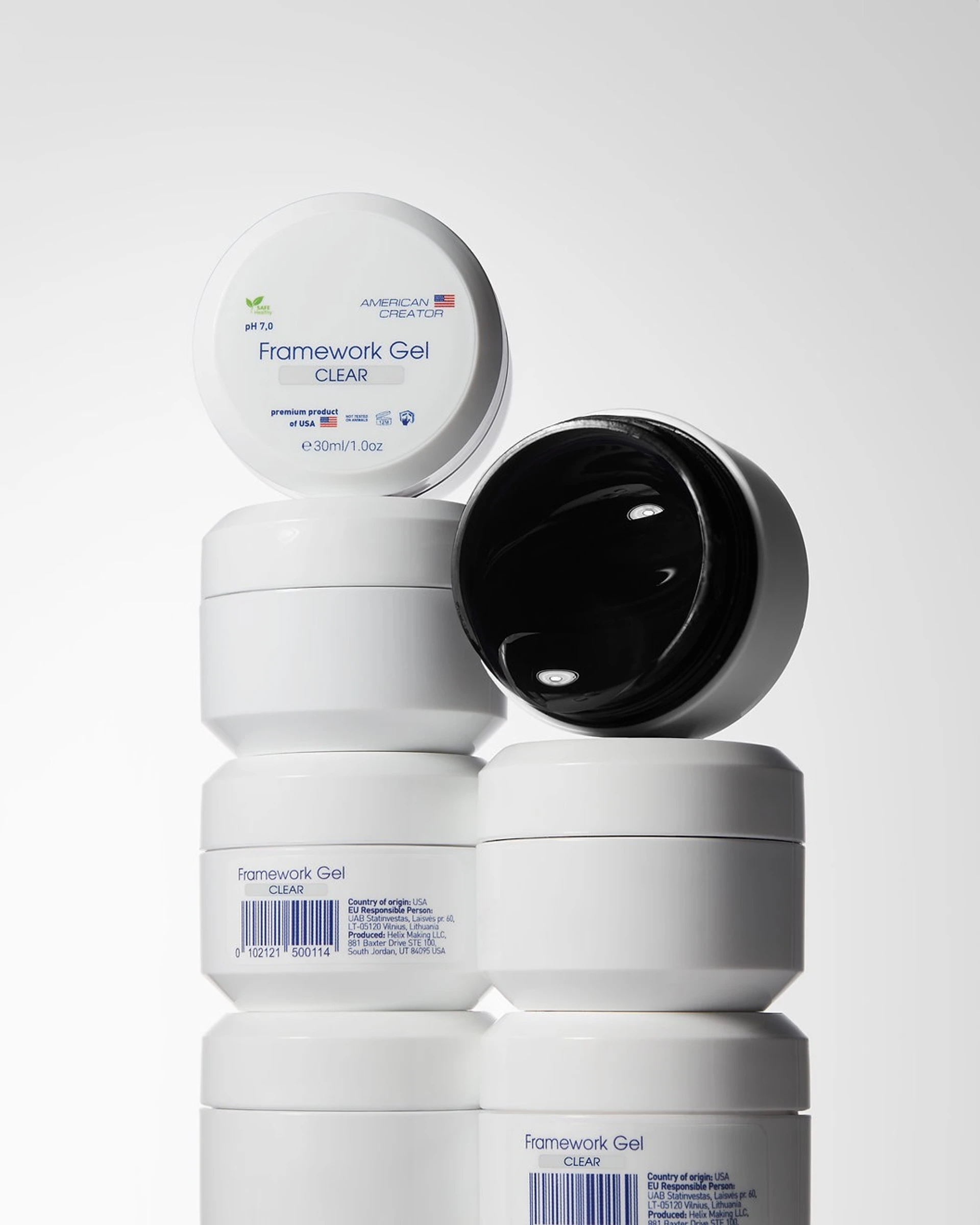 Le Framework Gel Clear d'American Creator est un gel constructeur dur transparent, à la consistance contrôlée et confortable.