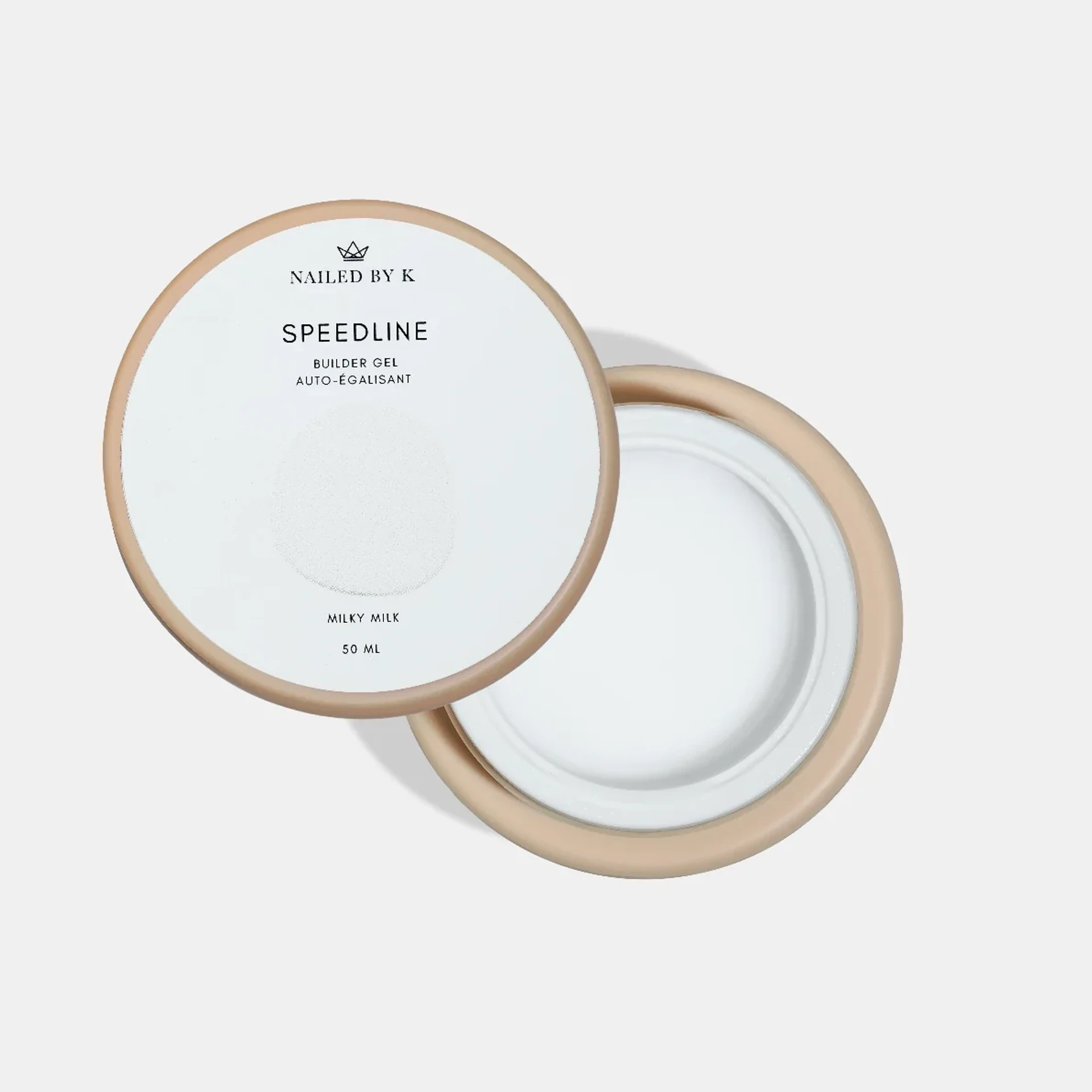 Milky Milk de la gamme Speedline de Nailed By K est un gel de construction auto-égalisant blanc laiteux. Sa viscosité fluide facilite l'application et le limage, pour un rendu naturel et lumineux directement à la construction.