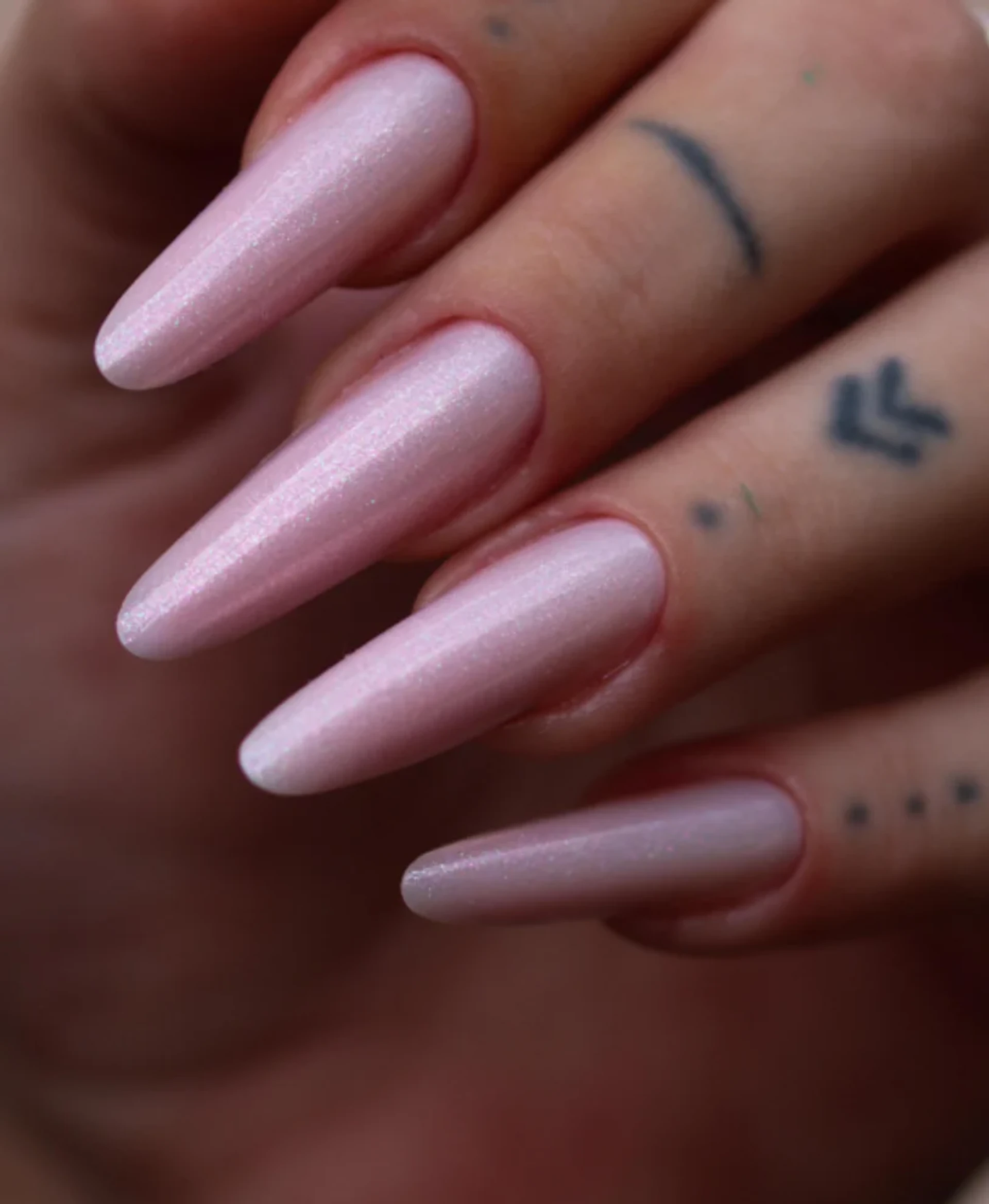 - Couleur : Nougat Pearl (rose poudré pâle aux micro-paillettes nacrées irisées)