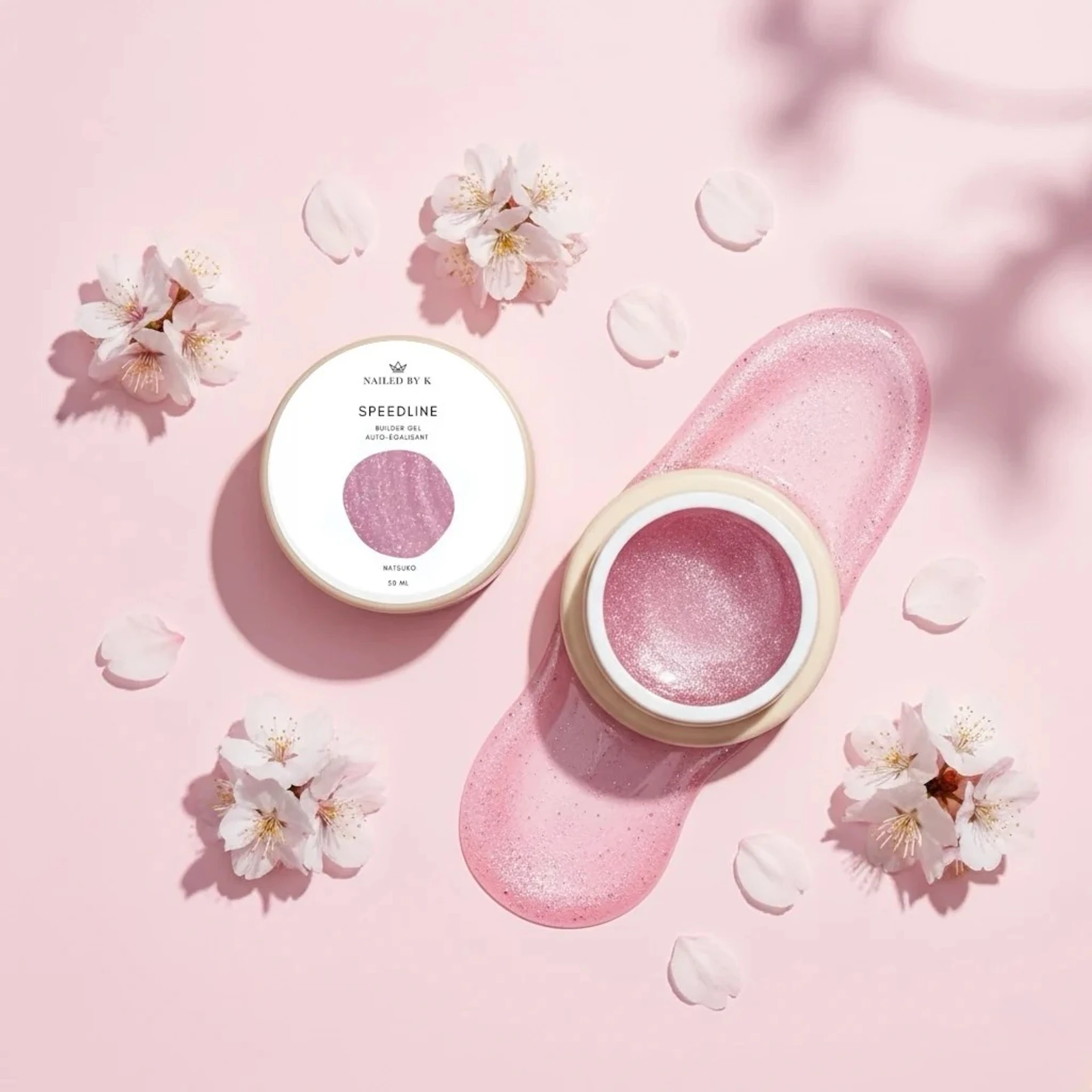 Le gel de construction SPEEDLINE Natsuko de Nailed By K est un gel fluide facile a travailler et a limer, avec des paillettes qui font l effet coup de coeur aussi bien sur la technicienne que sur la cliente.