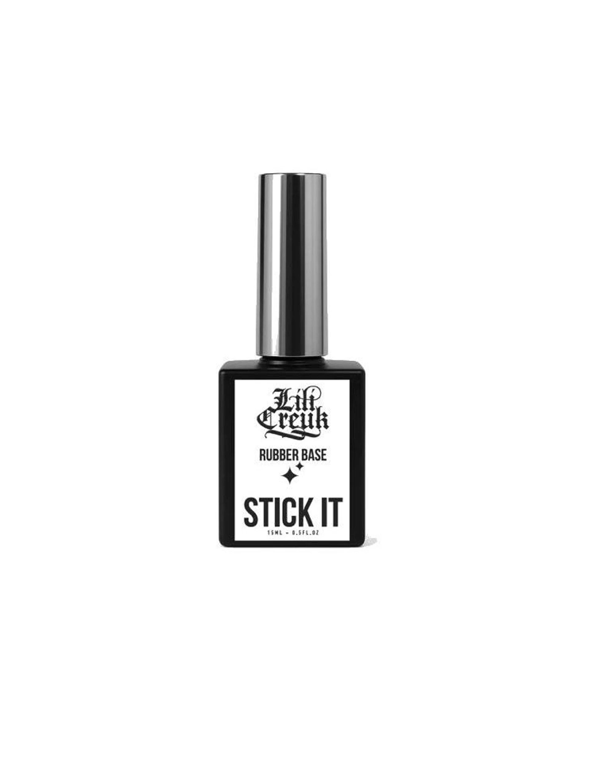 Stick it est une rubber base transparente fluide, HEMA FREE et TPO FREE, conçue pour assurer une tenue irréprochable sur les poses américaines (Gel X) et les légers renforts.