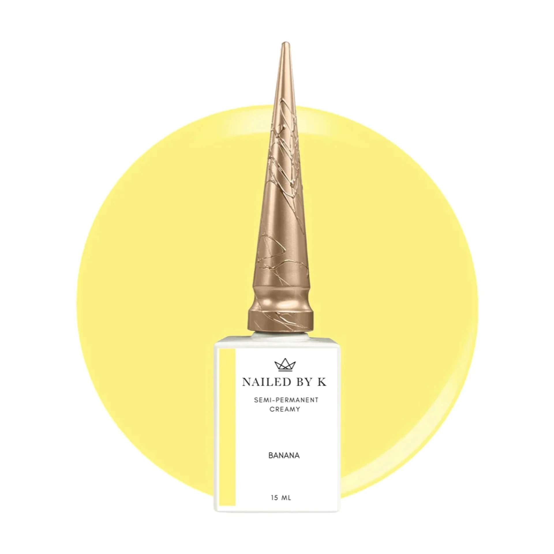 Le semi-permanent Banana de Nailed By K est un vernis gel crémeux dans une teinte jaune pastel poussin douce et lumineuse, parfaite pour sublimer les poses printanières et estivales.