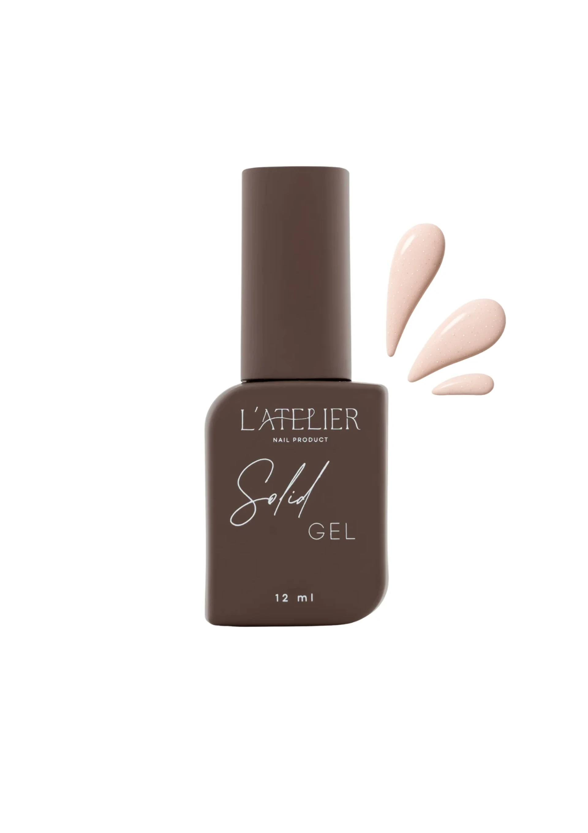 Le Solid Gel Holly de L'atelier Nail Product est un gel de construction coloré en bouteille, dans un beige rosé nude aux micro-reflets dorés, pour des poses naturelles et lumineuses.