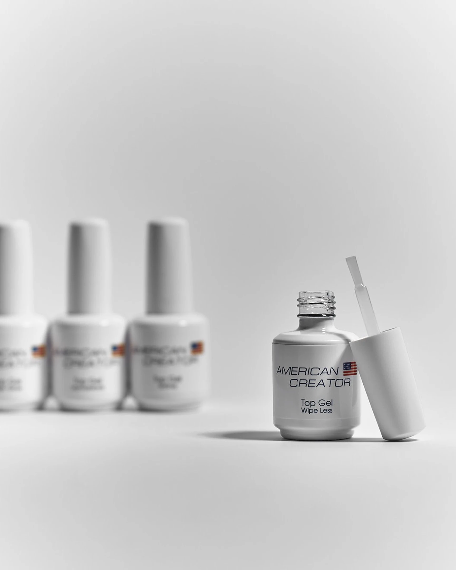 Le Top Gel Wipe Less d'American Creator est un top coat sans couche collante intégrant un filtre UV pour une protection longue durée.
