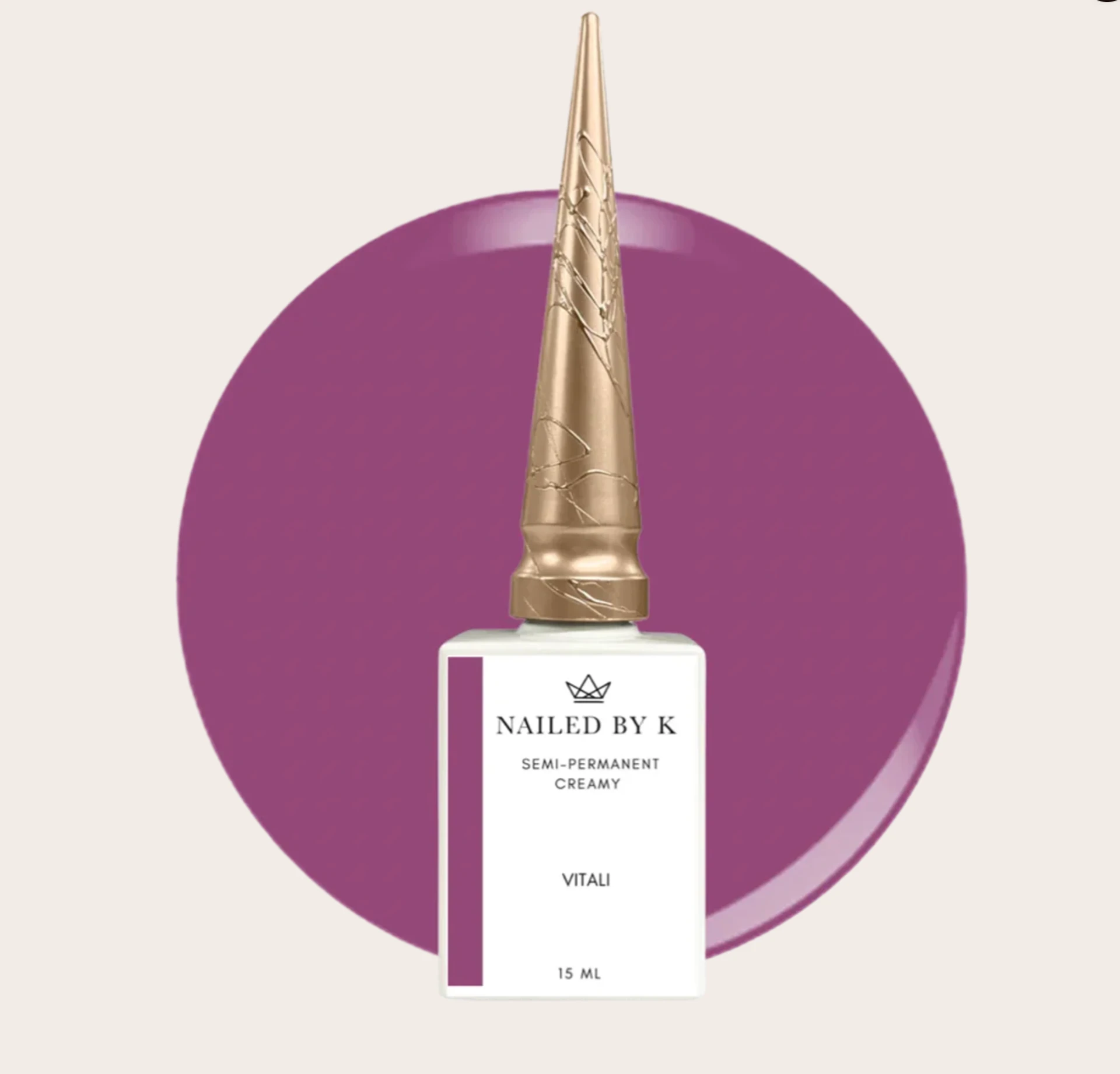 Le vernis semi-permanent Vitali de Nailed By K est une teinte mauve rosé soutenu, féminine et polyvalente.