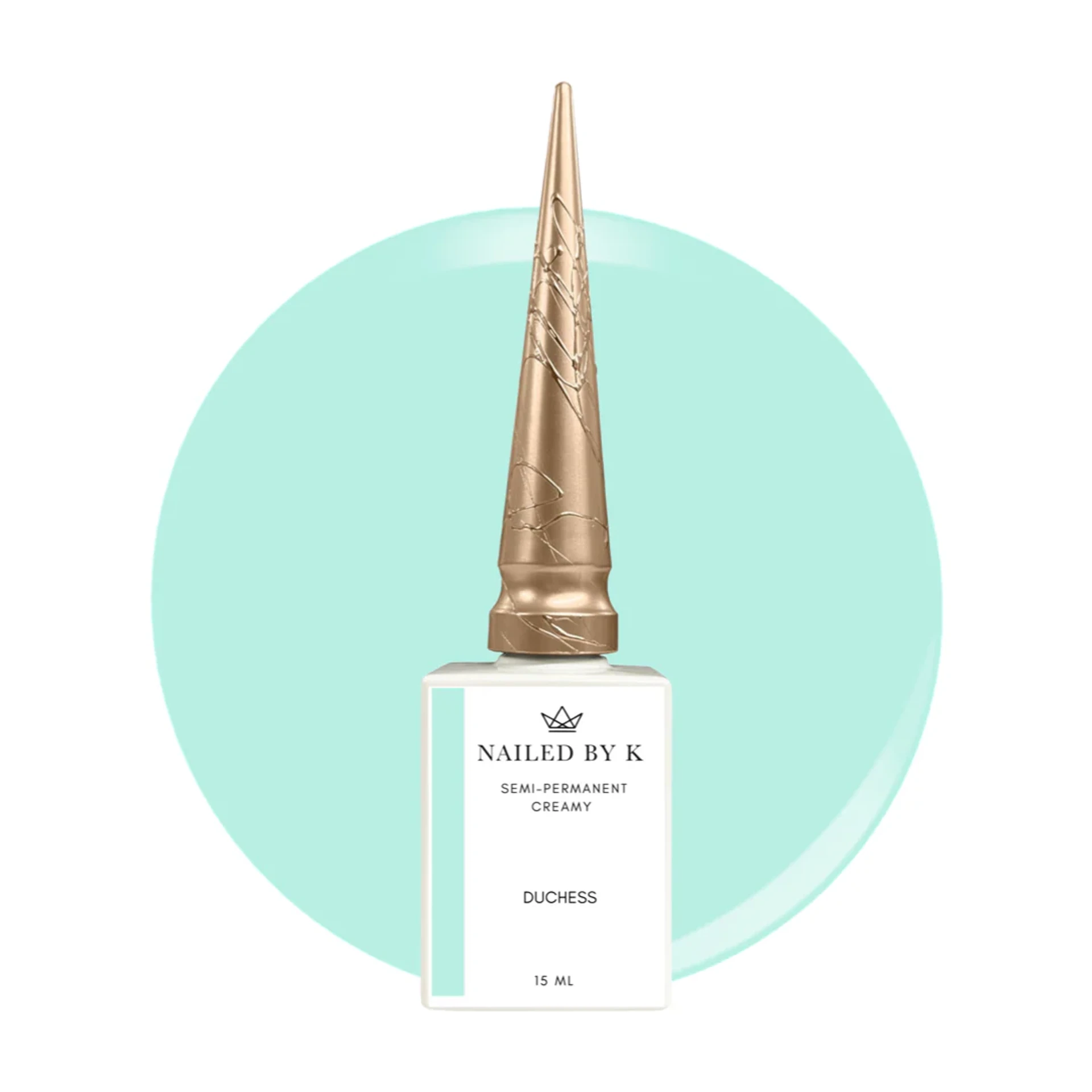 Duchess de Nailed By K est un vernis semi-permanent vert d’eau pastel doux et lumineux à la texture crémeuse et pigmentée. Sa teinte fraîche et délicate apporte un rendu élégant et moderne, parfait pour des manucures printanières, des poses pastel ou des prestations raffinées.