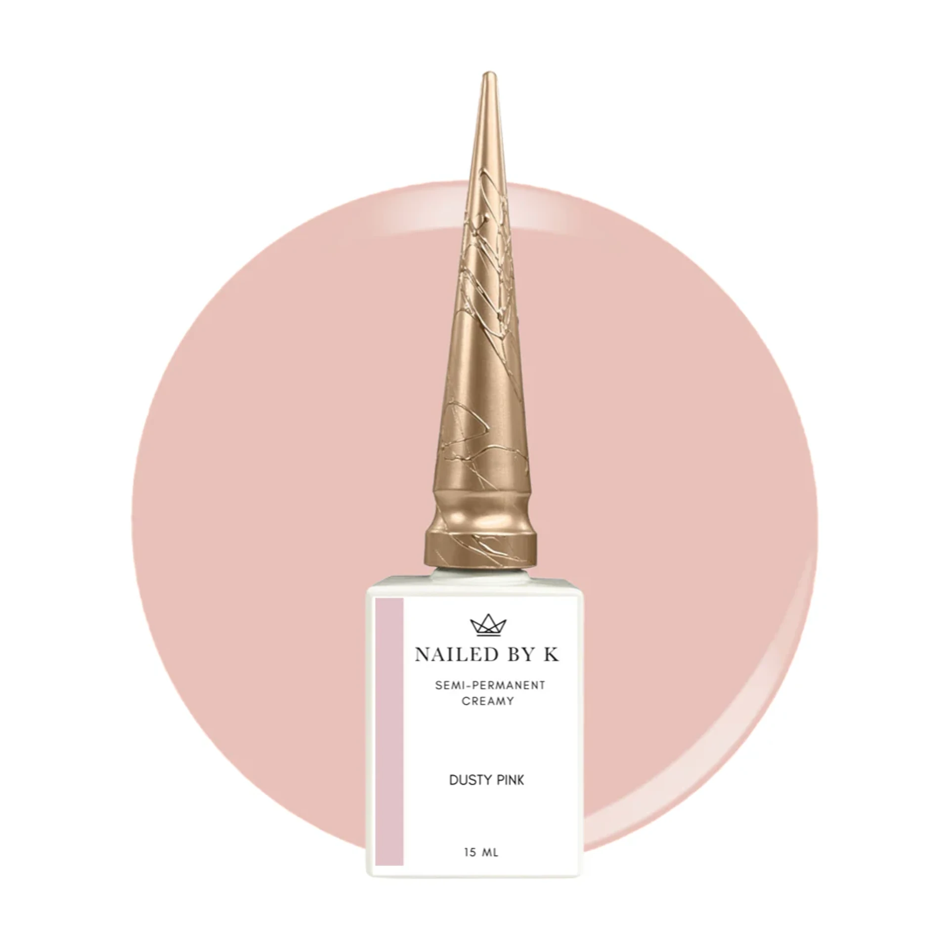 Dusty Pink de Nailed By K est un vernis semi-permanent rose nude doux et élégant à la texture crémeuse et pigmentée. Sa teinte subtile et intemporelle offre un rendu naturel et sophistiqué, idéal pour des manucures minimalistes, des poses nude ou des prestations professionnelles raffinées.