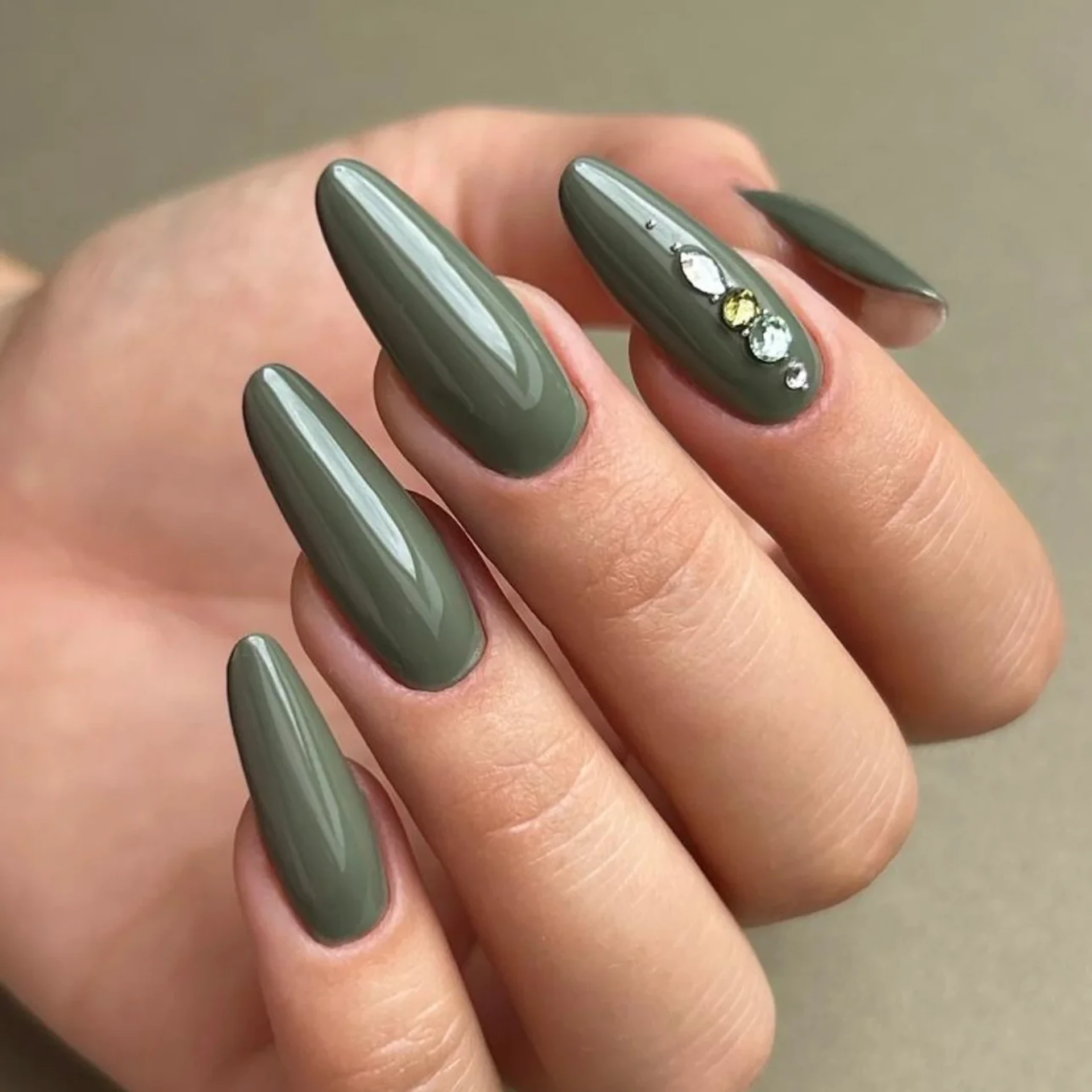- Les prothésistes ongulaires recherchant un kaki chaud tendance