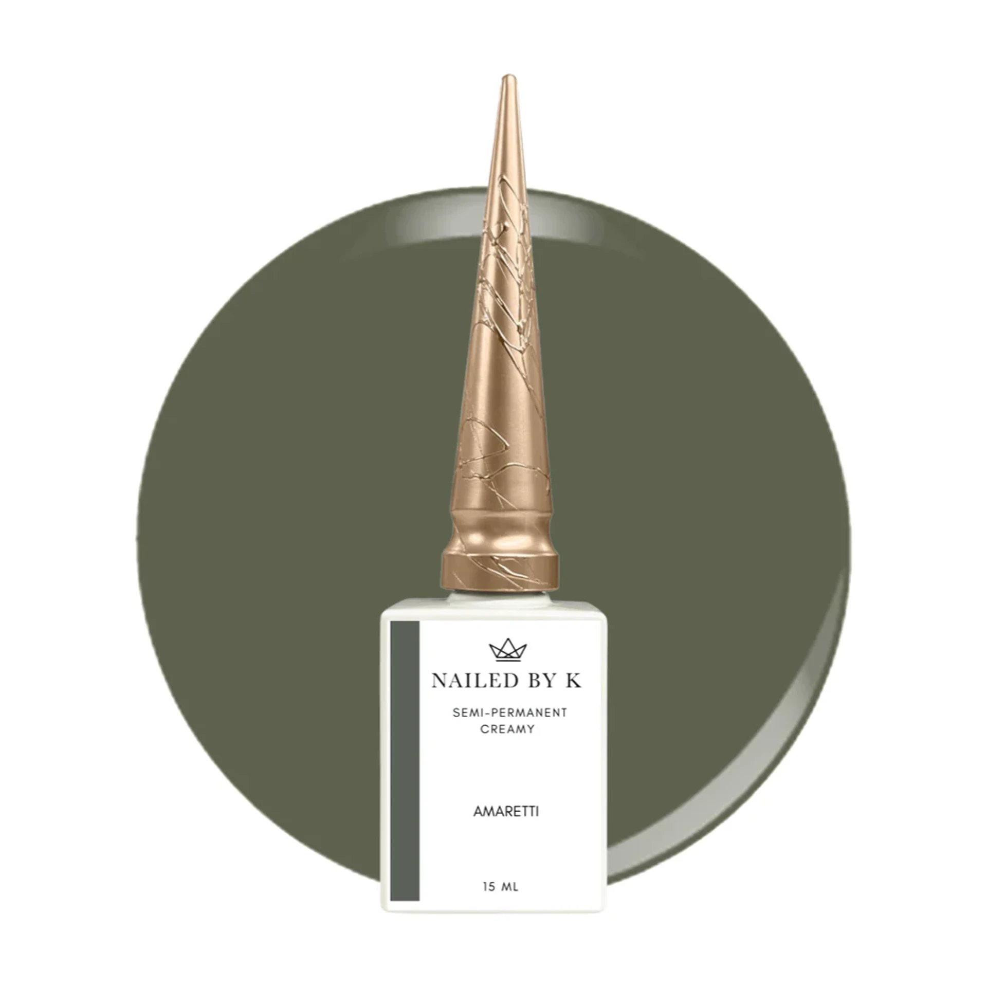Amaretti de Nailed By K est un vernis semi-permanent kaki crémeux à la texture hautement pigmentée et couvrante. Sa teinte originale et sophistiquée apporte un rendu élégant et moderne, parfait pour des manucures automne‑hiver, minimalistes ou tendances.