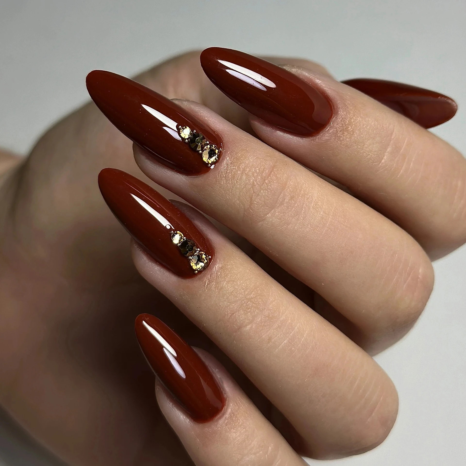 Le semi-permanent Chestnut de Nailed By K est une teinte marron noisette élégante idéale pour les poses automne et hiver.